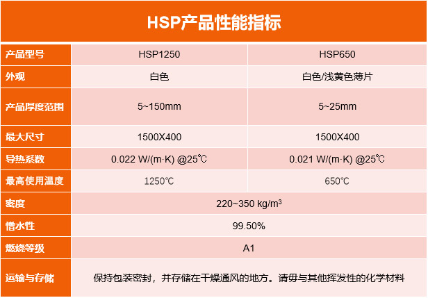 特殊的工艺使得HSP系列产品具有导热系数极低、密度小、整体疏水性能极好、防火阻燃等级达到A1级标准